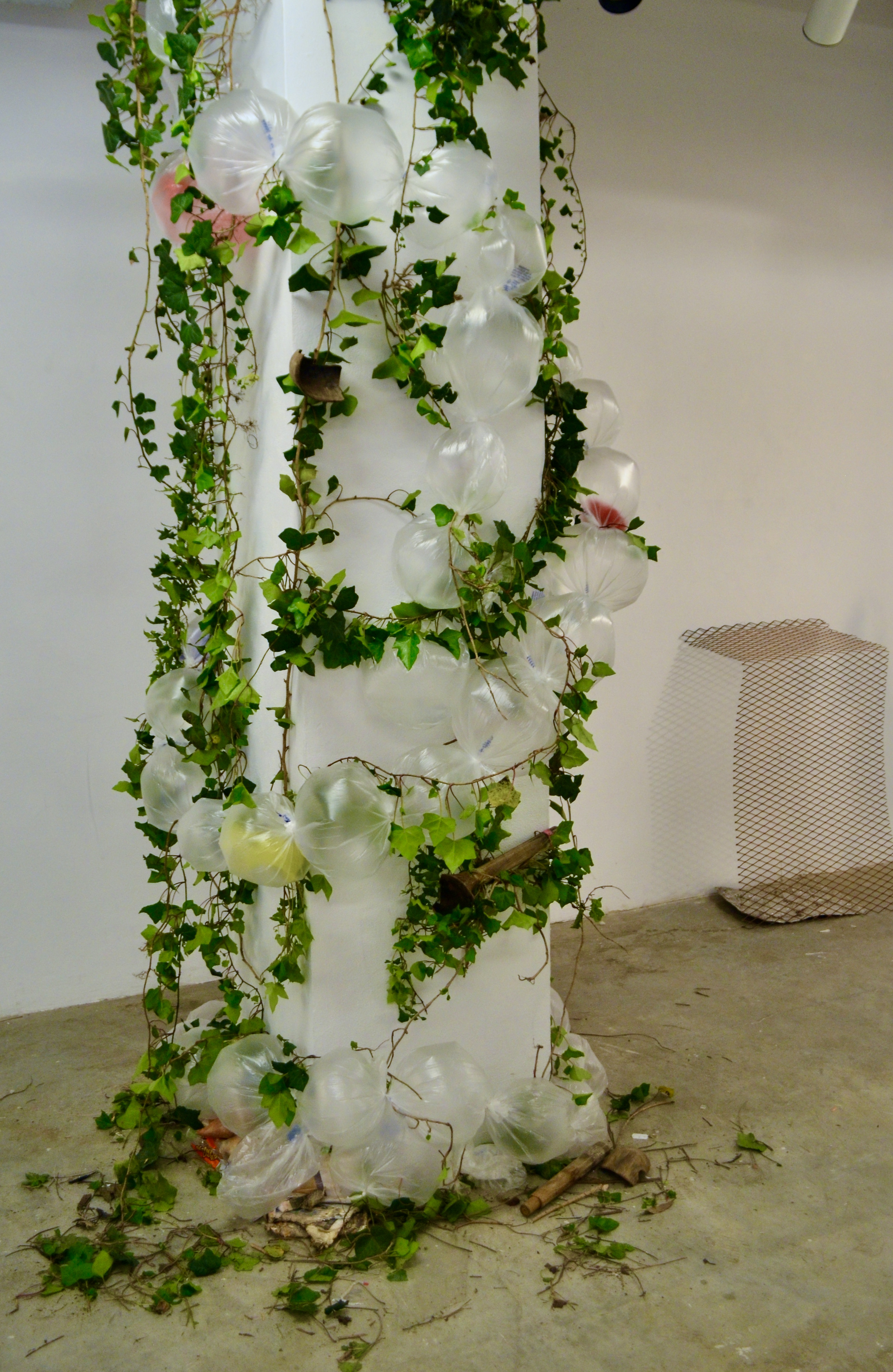 12 iPhones and their feedback, Polypropelyne bags, styrofoam, invasive ivy, single channel video, PET-filtered light, garbage found in alleyways of Richmond, Virginia, instagram profile